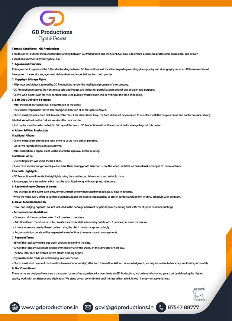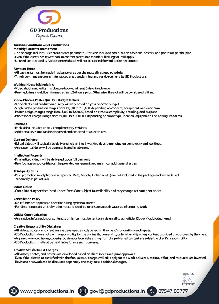 These terms and conditions outline the rules and regulations for the use of GD Productions's Website, located at https://gdproductions.in.